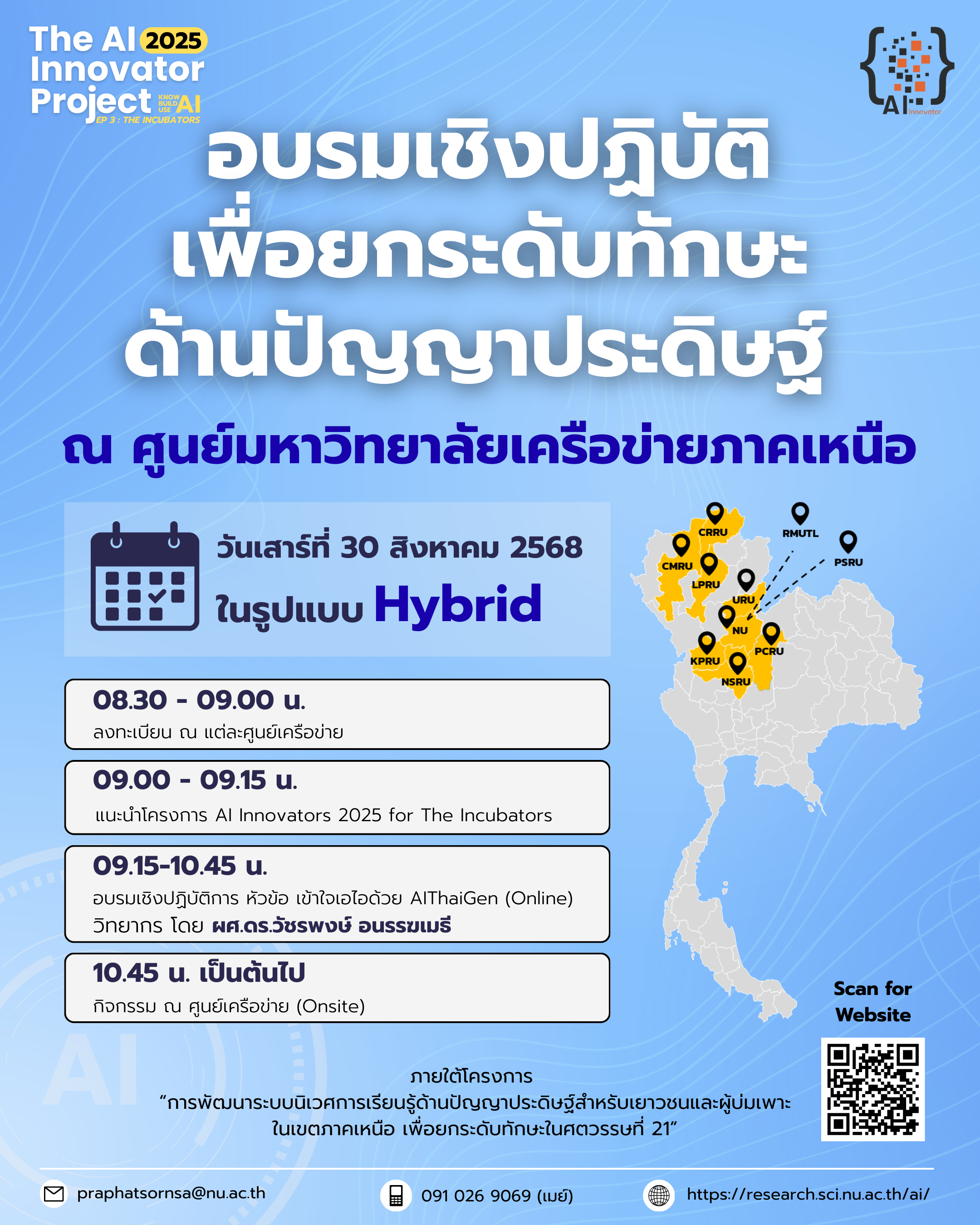ผู้ดำเนินโครงการคือกลุ่มบุคลากรด้านคณิตศาสตร์และวิทยาการคอมพิวเตอร์ จาก 10 มหาวิทยาลัยในพื้นที่เขตภาคเหนือ ซึ่งได้รวมตัวกันเป็นเครือข่ายวิจัยด้านปัญญาประดิษฐ์ มีวัตถุประสงค์ที่จะช่วยกันผลักดันให้เกิดการขับเคลื่อนทางการศึกษา การพัฒนาองค์ความรู้ การสร้างนวัตกรรม และการพัฒนากำลังคนในด้านปัญญาประดิษฐ์ ในเขตพื้นที่
